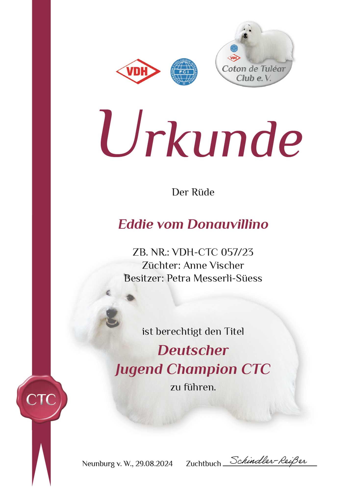 The Cotons of our kennel got wonderful results in German showrings last year. So vom Donauvillino is "(CTV-)Kennel of the Year 2007" !!!