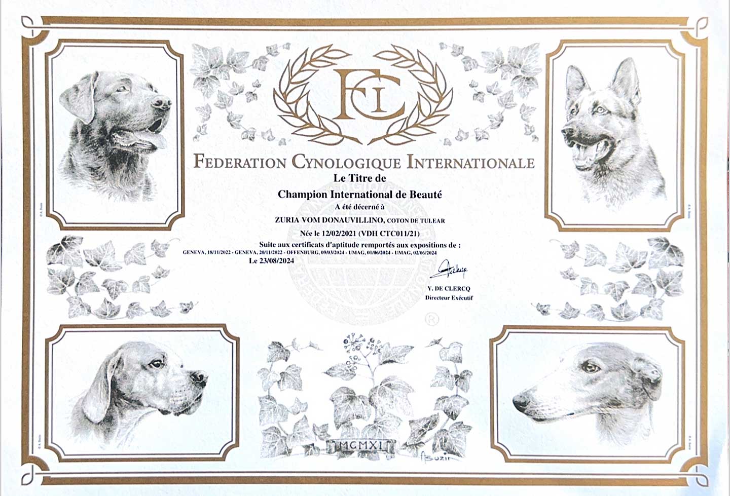 Ivorie vom Donauvillino is now official German Champion VDH!Our M-litter from kennel "vom Donauvillino" is born. Ivorie got five boys and one girl.